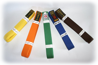 Nach jeder Kyu-Prüfung haben wir auch den passend farbigen Gurt.
